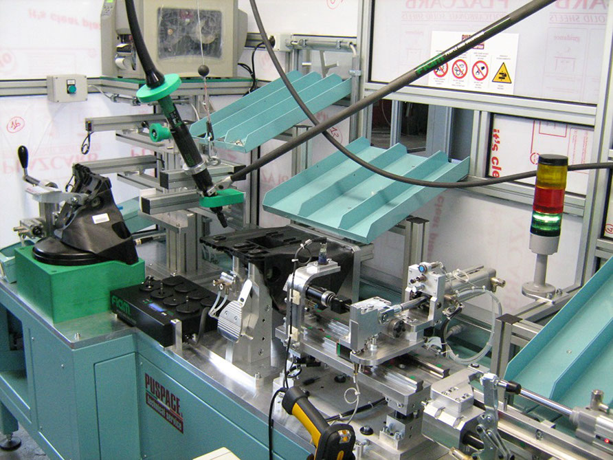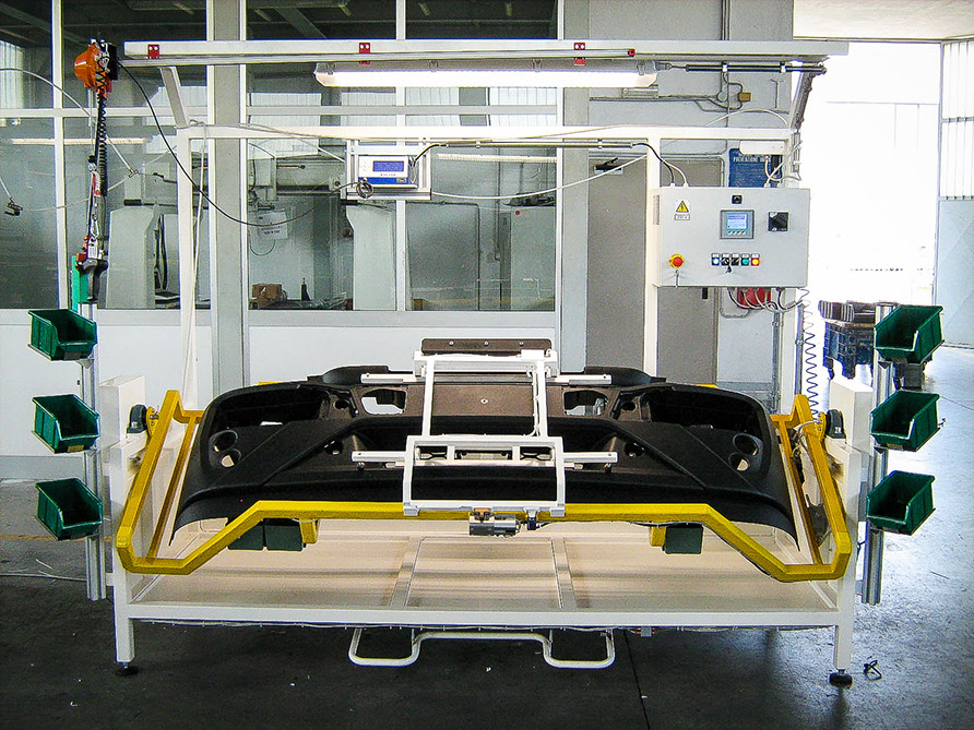 Progettazione e realizzazione di banchi per il montaggio, il controllo e la verifica dei componenti con oggettivazione, corredati da tutti gli strumenti di cui il Cliente ha bisogno, come ad esempio avvitatori elettrici con controllo della coppia, movimenti manuali/automatici con azionamento pneumatico/meccanico, barriere fotoelettriche per la sicurezza degli operatori, dispositivi ottici e stampanti per la tracciabilità . Tutte le macchine vengono consegnate con allegata documentazione e auto-certificazione CE di rispondenza alla direttiva macchine 2006/42/CE.